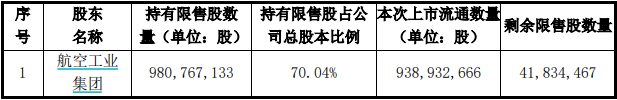 本次解禁涉及股东仅中航沈飞控股股东一家——中国航空工业集团有限公司,解禁筹码集中,且控股股东未提出减持意向,故中航沈飞虽解禁规模大,但对市场的冲击力小。