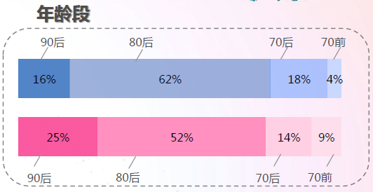 由于此次网调是面向世纪佳缘会员随机投放问卷,因而样本的年龄分布在一定程度上可反映不同年龄层的交友需求度。数据显示,此次调查80后参与人数最多,其中80后男性占参调男性总量的62%,80后女性占参调女性总量的52%;而90后男女则分别占比16%和25%,由此可看出90后女性相较男性,对恋爱结婚更有紧迫感。