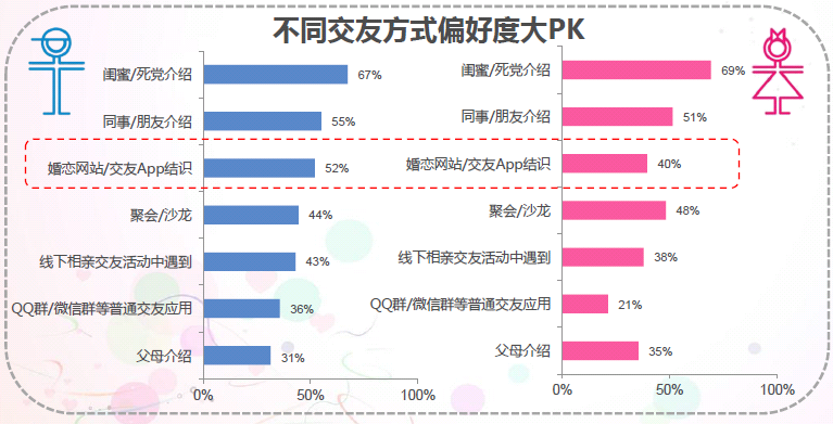 数字时代,交友方式更加多元,但比起通过婚恋应用或线下聚会结识陌生人,仍是熟人间的推荐更受欢迎。不过,父母介绍却是单身男女们较反感的。