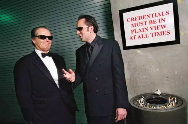 两位墨镜哥,尼古拉斯·凯奇与杰克·尼克尔森,2003年奥斯卡颁奖典礼。他俩都是当年影帝候选人,虽然最终都输给了《钢琴家》的阿德里安·布罗迪。Art Streiber