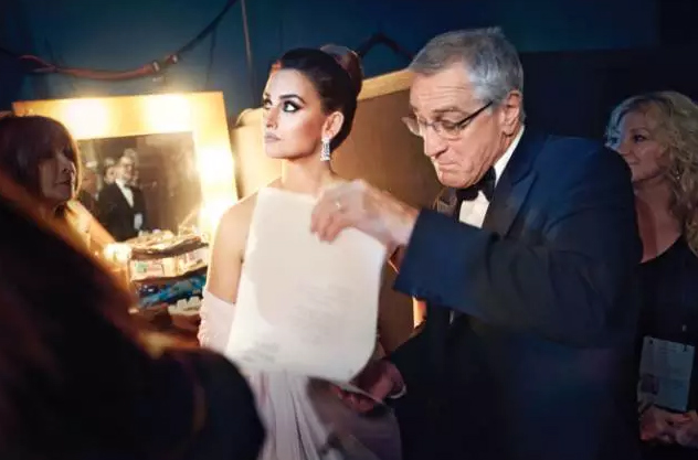 罗伯特·德尼罗与佩内洛普·科鲁兹准备上台颁发最佳剧本类奖项,2014年奥斯卡颁奖典礼。Art Streiber