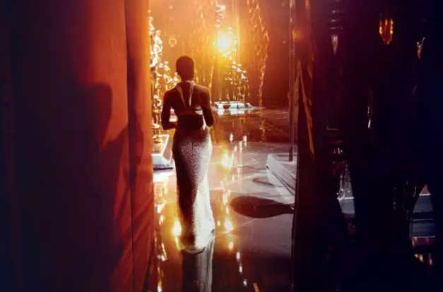 准备上台颁奖的露琵塔·尼咏欧,2015年奥斯卡颁奖典礼。