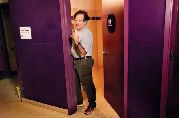 站在厕所门口的罗宾·威廉斯,2004年奥斯卡颁奖典礼。Art Streiber
