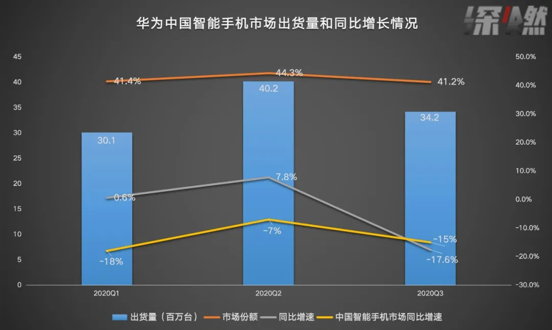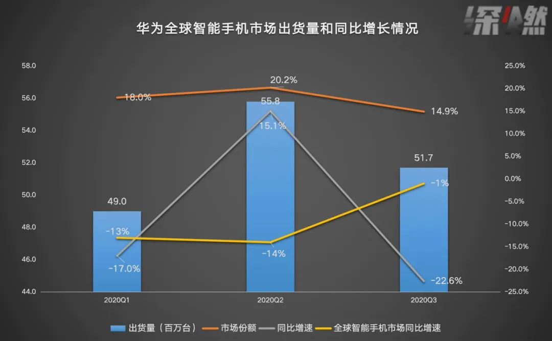 从二季度开始,华为只好将手机业务收缩回国内,成为中国市场的主导者,但到三季度,华为手机所需的芯片、面板等持续被断供,在国内也无法施展拳脚。