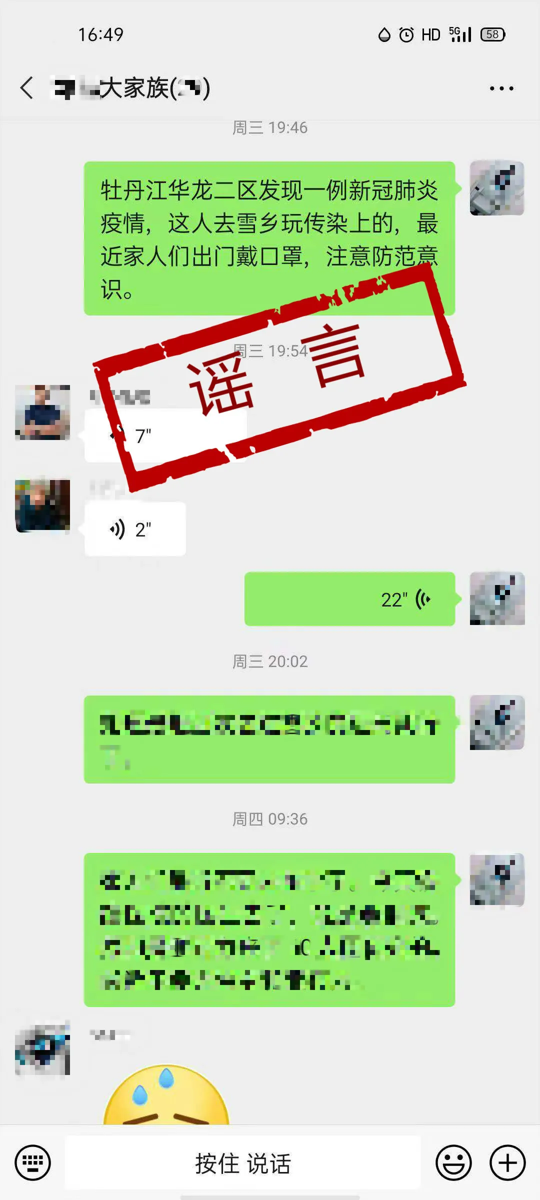 据“网信牡丹江”微信公众号消息,12月12日,有微信群转发一条内容为“牡丹江华龙二区发现一例新冠肺炎疫情,这人去雪乡玩传染上的,最近家人们出门戴口罩,注意防范意识。”的信息。经核实,该条信息不属实。公安机关已对造谣者杨某依法行政拘留10日,并处500元罚款。