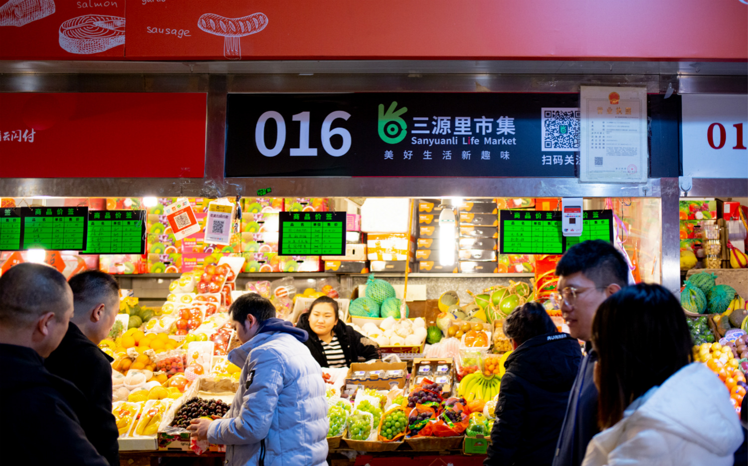 以北京现存的三个类型的菜场为例,传统菜贩以农民来摆摊为主,通常分布在较为大型社区周边,他们通常每周来2-3次,提供送菜到家服务,这种便捷性博得了小区居民的信任;私人开设的社群粮店不少接入了美团,虽然菜品新鲜度比不上传统菜贩们的,但比起盒马,在地理位置上有优势,拥有一定的存在价值;另外,是以三源里菜市场为代表的大型的城市中心菜市场,这个网红菜市场菜价不低,不过那里的菜贩依旧表现淡定,认为哪天社区团购倒闭,三源里也会继续生存,可以说是“论持久战”的代表。