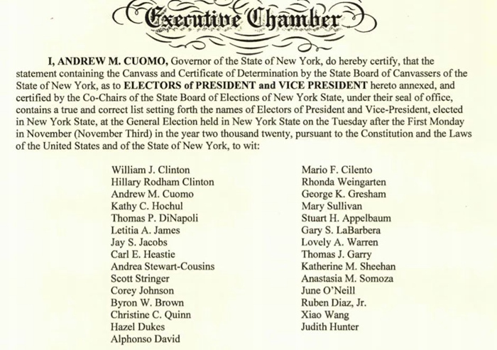 上周,全美50个州和华盛顿已经完成了计票结果的认证,国家档案馆也在官网公布了各州选举人名单。