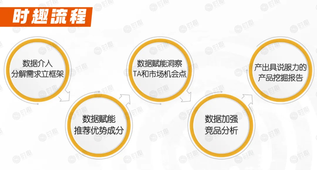 可以看到,在这个案例中营销公司是以数据赋能,从用户端、市场趋势去反推产品力,与研发部、品牌部共同探讨,帮助品牌节省产品定位、定价、渠道等过程成本,让消费者、竞品等营销视角的数据,贯穿每一个关键决策。