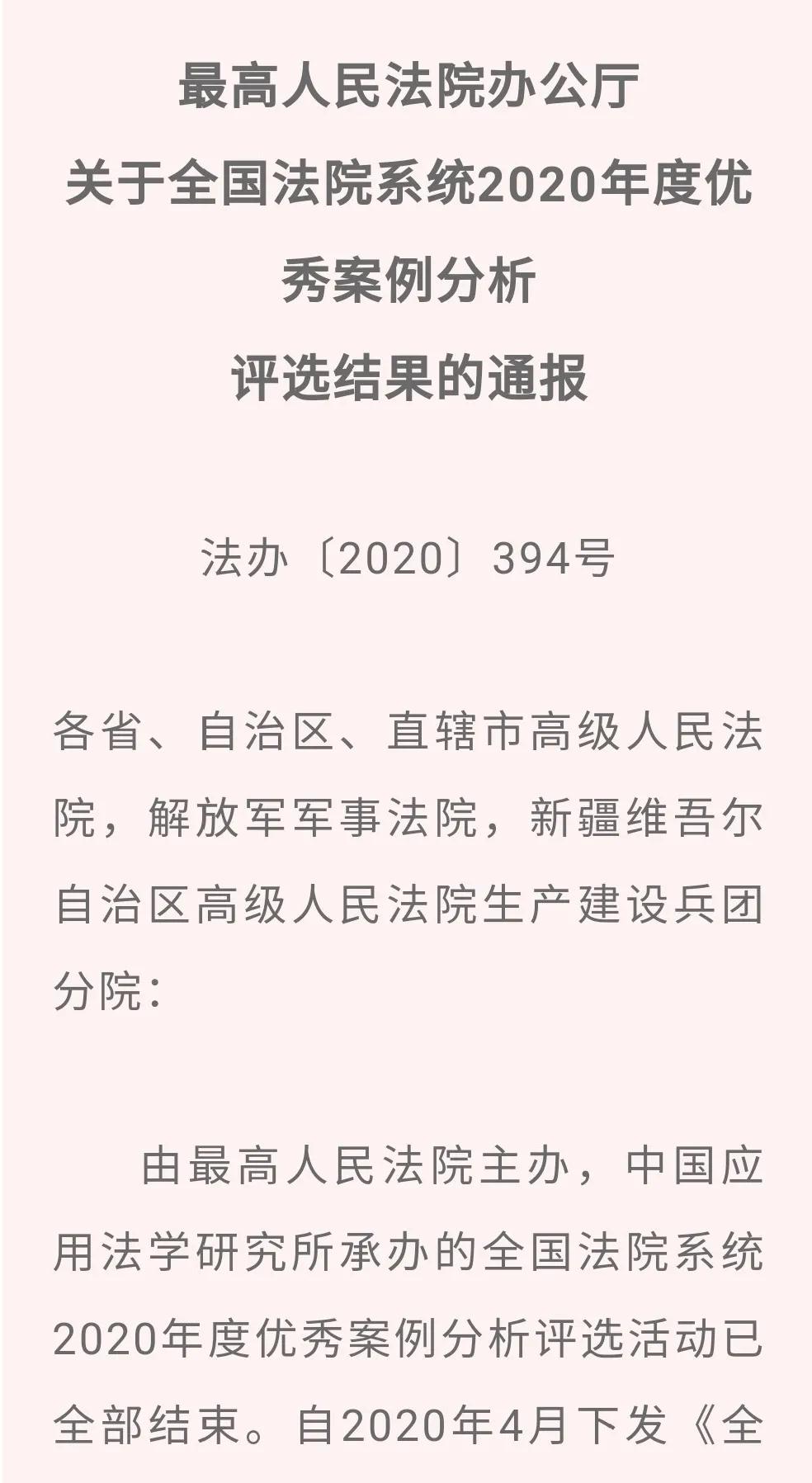全国法院系统2020年度优秀案例分析三等奖