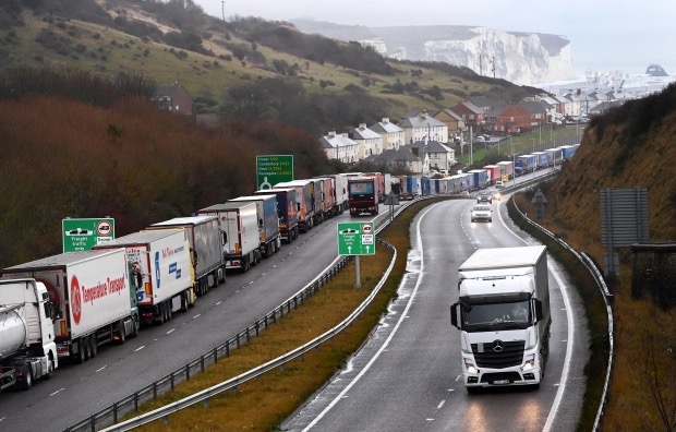 从1月1日起的6个月内,英国仅会对欧盟进口商品进行少量随机检查,欧盟则计划对英国商品恢复全面边境检查。英国政府此前警告称,最坏情况下在多佛港和英法海底隧道周围道路上排队的卡车将达到7000辆。