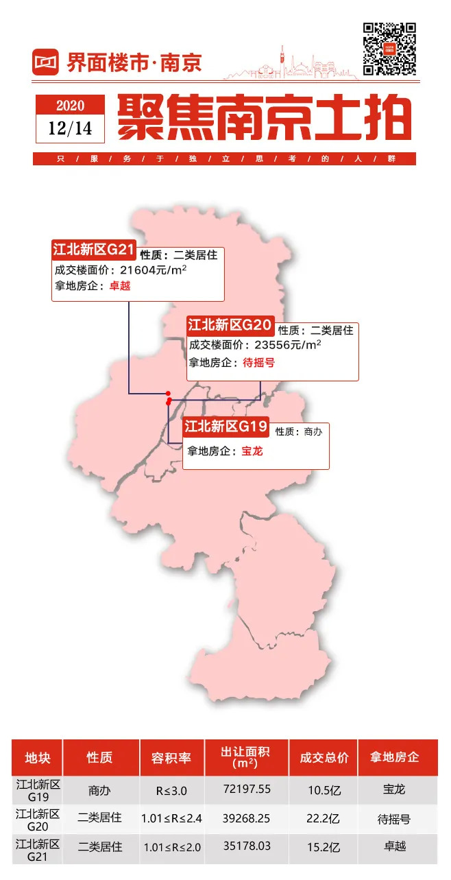1、底价成交,江北新区核心区G19地块被宝龙以10.5亿元拿下。