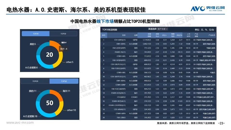 根据奥维云网(AVC)监测数据显示,2020年11月电储水热水器市场零售额为3.3亿元,同比下降14.9%。主销80L容积段环比上升,重点产品渗透率均有提升。A.O.史密斯、海尔系、美的系机型表现较佳。