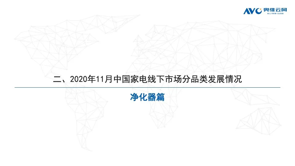 2020年11月净水器线下市场虽然借助双11线下联合促销,但市场降幅环比略有扩大,环比微增,通过渠道反馈情况来看,线下市场促销提前,对市场整体有明显分流,据奥维云网(AVC)监测数据显示,11月份净水器监测规模2.4亿元,同比下滑15.6%。从销售情况来看,提升较为明显的企业在于渠道主推品牌机型,美的集成加热产品在11月份实现大幅度增长,进入TOP10畅销榜单。