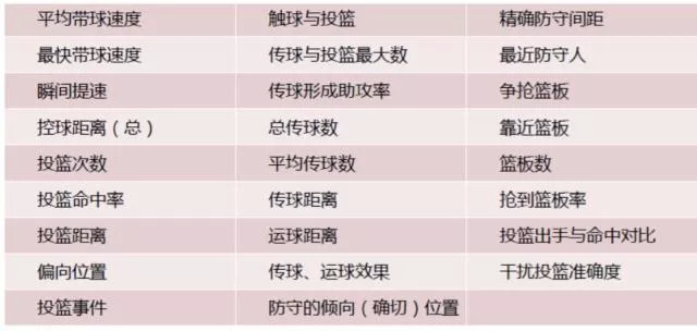 SportVU可统计的数据类别
