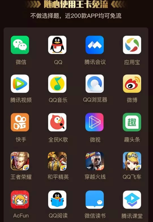 于是,三大运营商开始尝试不同的业务模式。中国联通首先瞄准了近年来迅速崛起、如日中天的互联网公司,推出腾讯大王卡等一系列互联网定向不限量的流量套餐与网卡,开启跨界融合的新路径。