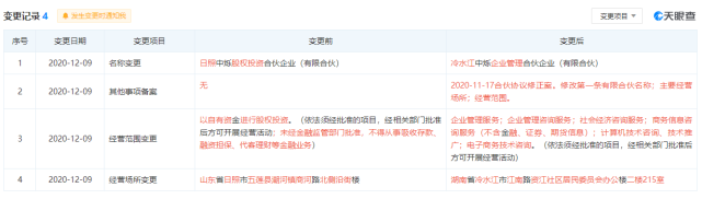 值得一提的是,冷水江中烁是12月9日刚刚更改的名字,工商变更前,该公司名为日照中烁股权投资合伙企业(有限合伙),与之一同变更的还有经营范围和经营场所。公司的办公地点由山东日照市直接迁到了湖南冷水江市一家社区居民委员会办公楼的二楼。