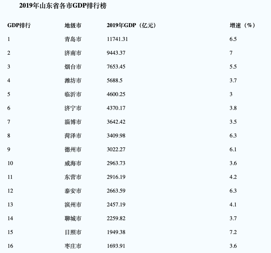 济南自不用说,即便是在合并莱芜后,其2019年的GDP在山东省内排名也依然只能屈居第二,比第一名青岛足足低了2000亿以上。