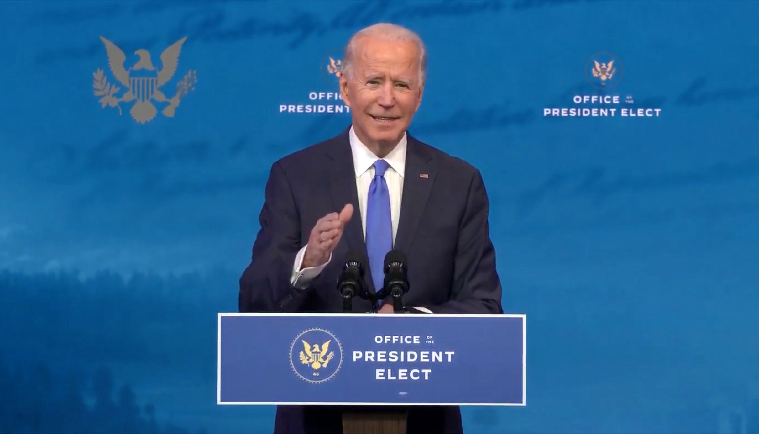 在美国各州选举人投票正式确定拜登当选为下一任美国总统后,拜登于周一(12月14日)发表讲话,重申了他对美国民主和选举的信心,并呼吁全体美国人民团结一致。
