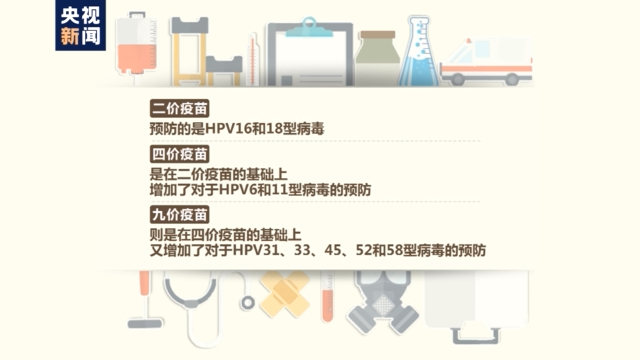 二价疫苗预防的是HPV16和18型病毒;四价疫苗是在二价疫苗的基础上,增加了对于HPV6和11型病毒的预防;而九价疫苗则是在四价疫苗的基础上,又增加了对于HPV31、33、45、52和58型病毒的预防。