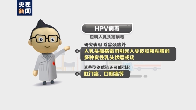 研究表明,除宫颈癌外,人乳头瘤病毒可引起人类皮肤和粘膜的多种良性乳头状瘤或疣,某些型别感染还可能引起肛门癌、口咽癌等。