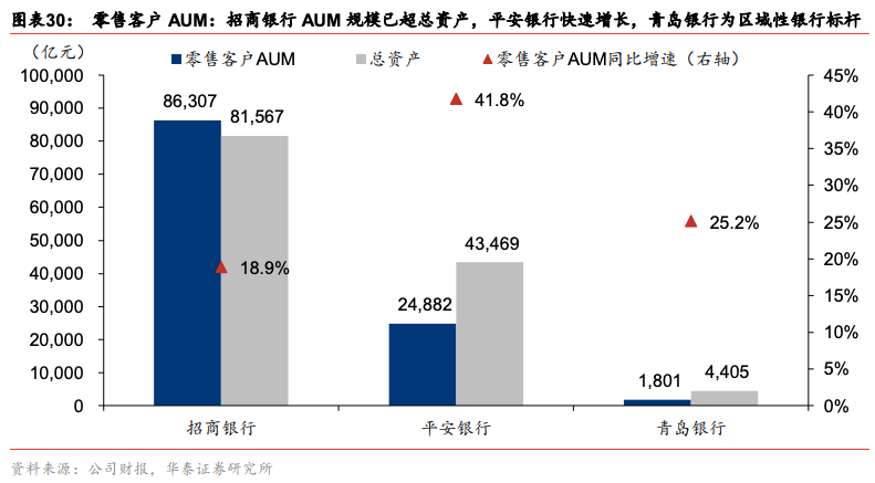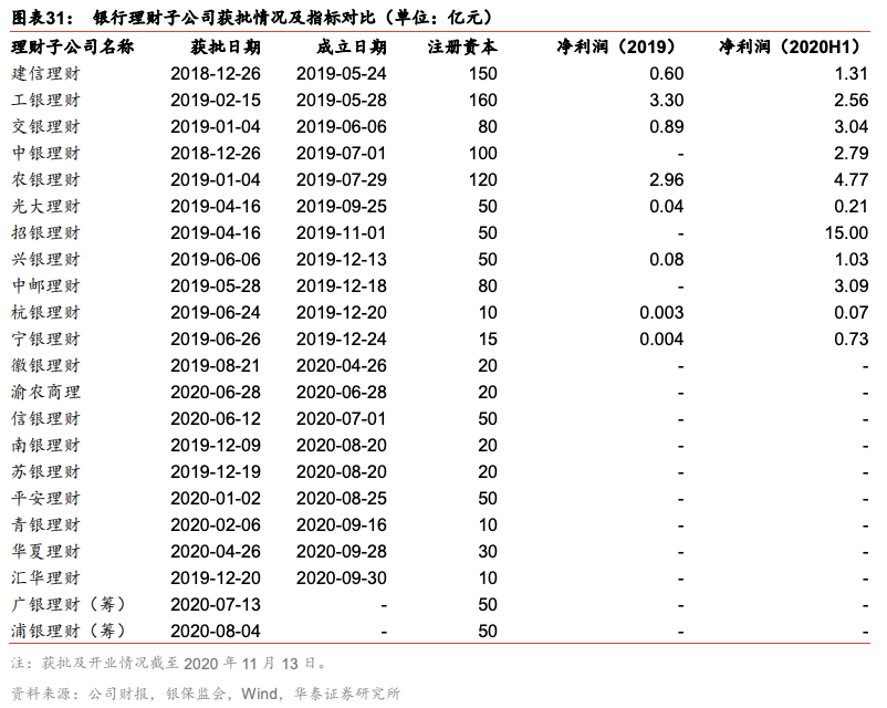 当前大资管市场百舸争流,不乏优秀银行依靠自身禀赋脱颖而出:如建立了先发优势的财富管理领先者招商银行,凭借客户分层经营和金融科技实力不断巩固优势;再如在科技引领、集团鼎力支持下实现快速追赶的平安银行。此外,理财子公司如雨后春笋般涌现,银行有望通过提升产品创设能力,更好地服务财富客户,其中青岛银行快速做大理财规模,于2020年2月获批筹建理财子公司(其余获批银行资产均在万亿元以上),成为区域性银行理财破局的标杆。