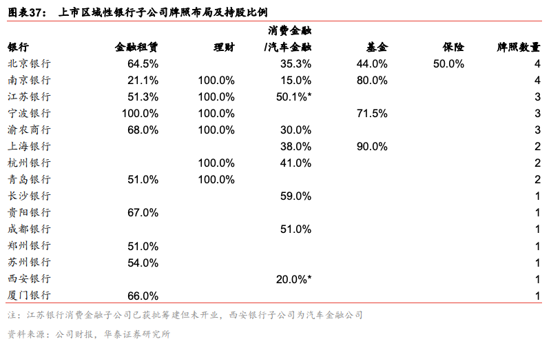 四是综合化,综合化经营促使母行与子公司协同联动、互为赋能,优秀区域性银行可凭借自身特色走出差异化之路,全国性牌照对母行协同赋能效应更强。