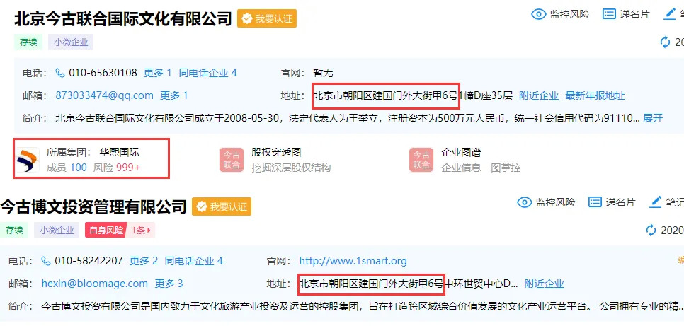 今年7月,华熙昕宇将自己持有的10%股份转让给自然人王艺。王艺曾是北京金堂谷文化传播有限责任公司股东之一,金堂谷文化大股东正是华熙昕宇实际控制人赵燕。王艺名下的今古博文投资管理有限公司“华熙系”企业北京今古联合国际文化有限公司在同一地方办公,与北京华熙国际酒店留下的工商联系电话完全一致。