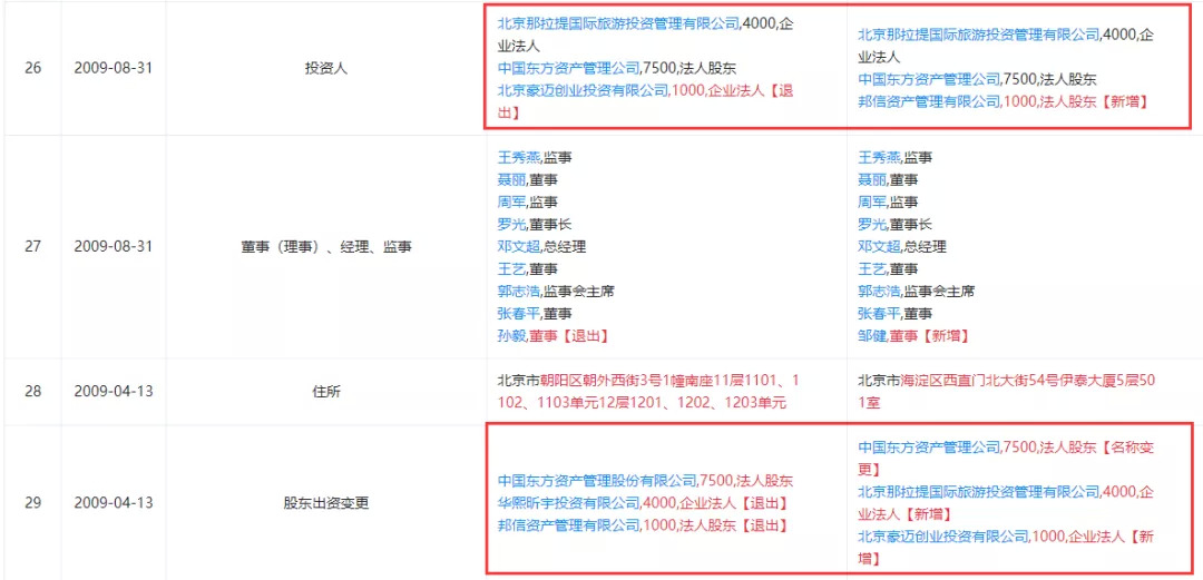 蹊跷的是,2009年4月,东方金诚进行了一次股权变更,华熙昕宇与邦信资产双双退出股东行列,改为北京那拉提国际旅游投资管理有限公司(简称:那拉提公司)与北京豪迈创业投资有限公司(简称:豪迈创业),分别持股32%与8%。