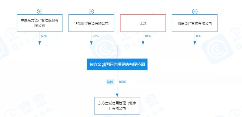 从东方金诚成立起,华熙昕宇就成为了其股东之一,持股32%,东方资管持股60%,邦信资产持股8%。