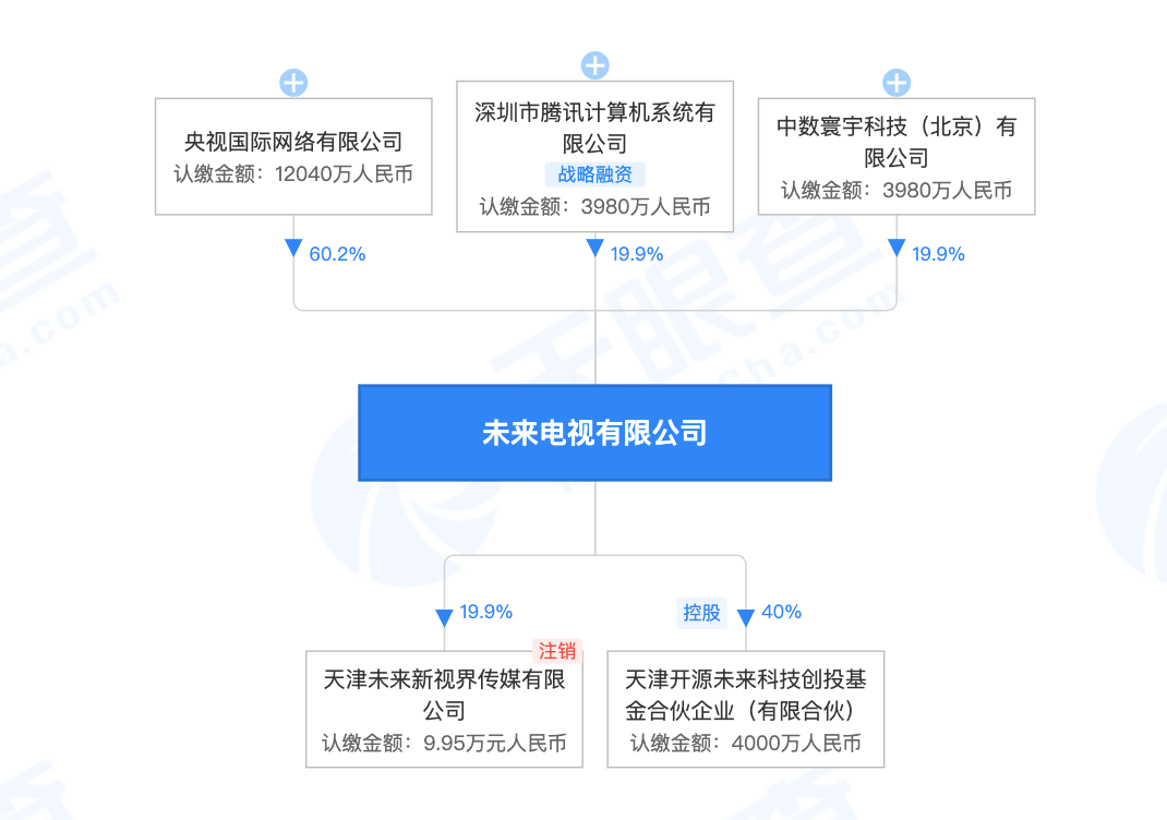天眼查APP股东信息显示,该公司由央视国际网络有限公司、深圳市腾讯计算机系统有限公司和中数寰宇科技(北京)有限公司共同持股,其中深圳市腾讯计算机系统有限公司为该公司第二大股东,持股比例为19.9%。