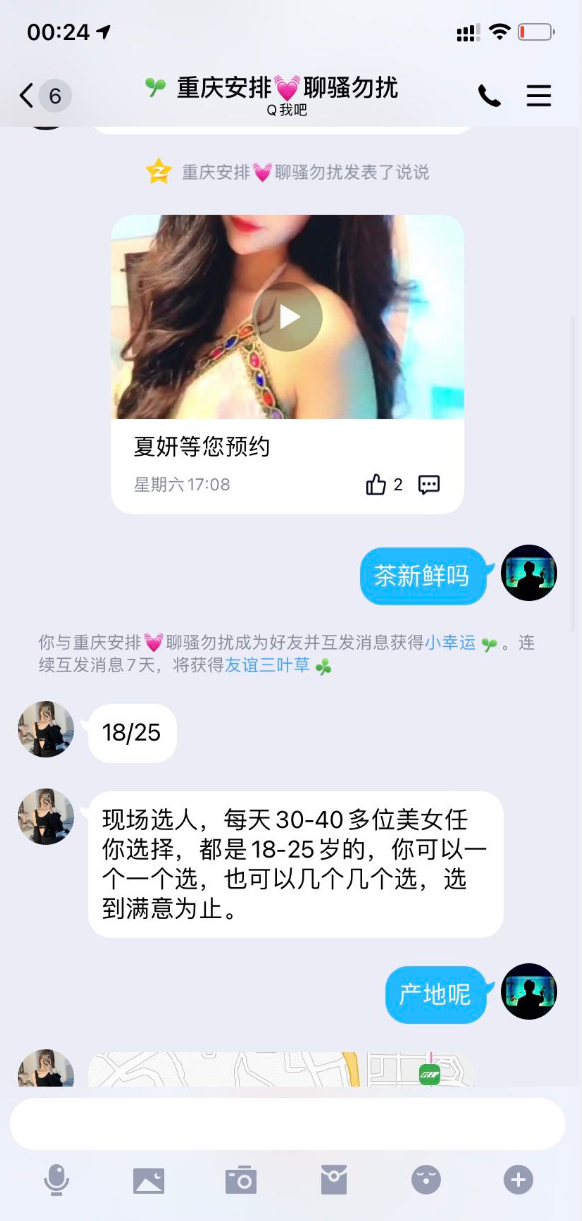 通过一段时间的卧底,一凡才知道“茶叶”相关的一整套引流术语是风月行业的黑话:“上新”则是指有新人加入了、“欢迎喝茶”则是表明营业了。