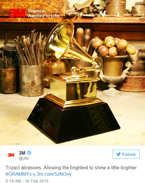 生产金属磨料的3M说自己的产品能让格莱美奖杯更闪耀。
