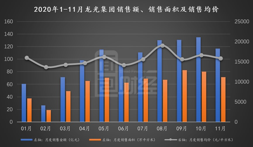 龙光集团此前公告的运营数据显示,公司11月实现合同销售金额116.70亿元,同比增加82.6%;合同销售面积为71.2万平方米;销售均价为15864元/平方米。