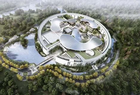 湖畔大学在杭州的本部整体占地面积375亩,一期规划建设只有60亩。