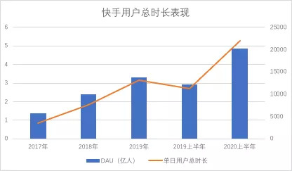 根据招股书信息,我们整理了快手的总用户时长表现,见下图