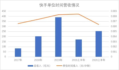 在快手的发展历史中,大规模投放以及对用户补贴就从未停止,尤其在与抖音争夺用户周期内,2020年与春晚的合作也彰显了平台更大的野心,要出圈,但DAU在2020上半年已经接近2.6亿,月活用户也接近5亿大关(若加上小程序用户超过7亿),从用户总量上,快手正在接近人口红利的天花板,作为一个以吸引用户注意力为主要商业基础的平台,快手无疑要向用户总时长要增长。