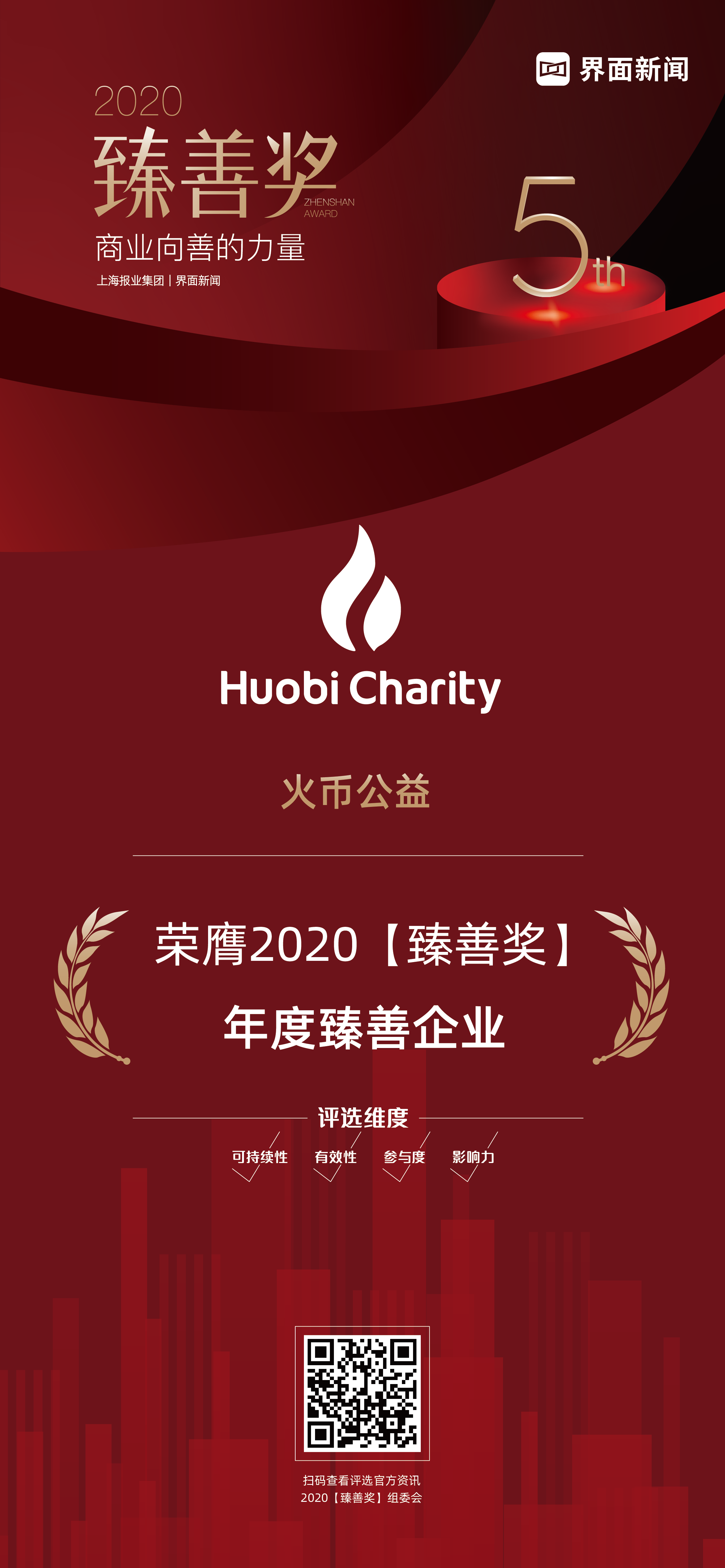 12月22日,上海报业集团l界面新闻在上海静安瑞吉酒店举办了2020【臻善奖】颁奖典礼,并正式公布了本年度获奖名单。围绕商业向善这一责任旨归,在公益慈善领域有所贡献的优秀企业踊跃参加。火币公益以卓越的CSR实践精神,荣膺年度臻善企业大奖。