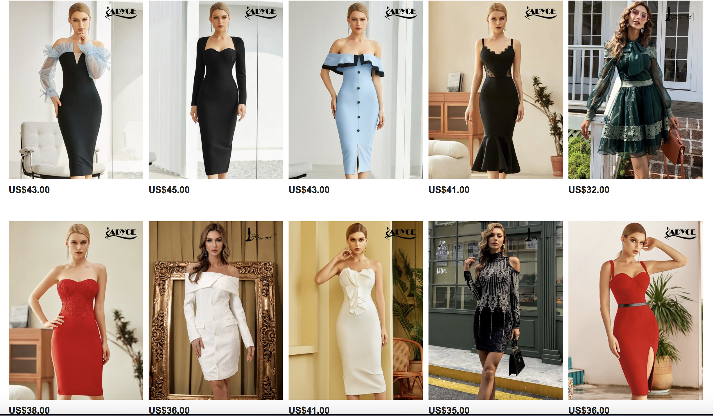 界面时尚查询天眼查App看到,JAZZEVAR的公司主体为北京嘉泽华服装服饰有限公司,主要生产批发装包括风衣、羽绒服、棉服、派克、皮衣等中高档女装;ADYCE的公司主体为广州蕾狄诗服饰有限公司,是一家专业生产晚礼服的外贸公司,此前主要基于阿里巴巴速卖通、国际站等贸易平台向海外买家展示;Simplee和Glamaker的公司主体为杭州森帛服饰有限公司,是一家跨境电商企业;AMII和Missord则分别是佛山市西伍服饰有限公司和广州品汌服装有限公司旗下品牌。