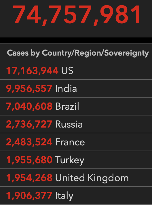0800【全球累计新冠确诊病例7475万】