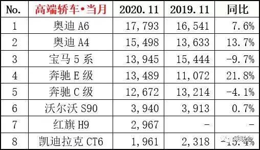 自车市复苏以来,今年豪华车市场呈现了爆发式增长。数据显示,11月乘用车市场零售达到208.1万辆,同比增长8.0%,累计增速收窄至-8.3%。而豪华车市场从4月份开始呈现出大幅增长的态势。11月零售同比增长27.0%,环比增长5.0%,保持强势增长特征。