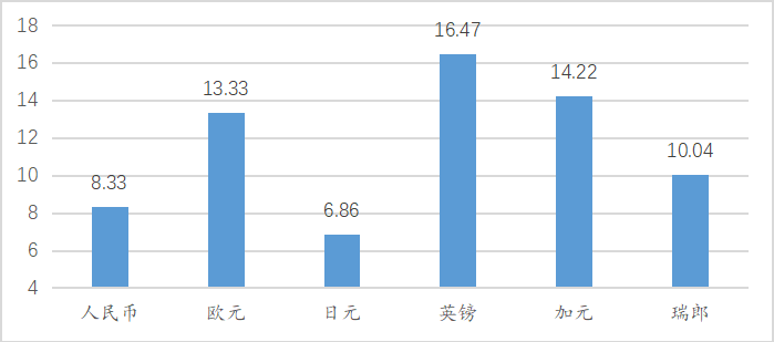 从全球主要货币对美元的汇率变动来看,都是升值的。我们以3月23日美联储开启无上限宽松的货币政策为节点,截至2020年12月16日上午11时,美元指数为90.48,这一期间美元指数下跌了11.69%。美元指数中的货币欧元、日元、英镑、加元和瑞郎分别对美元升值了13.33%、6.86%、16.47%、14.22%和10.04%(图1)。