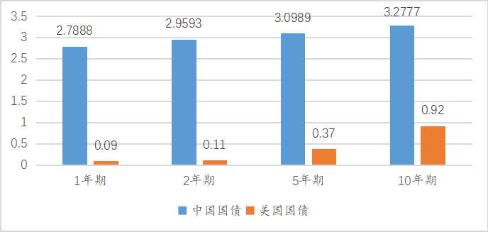 2、中外存在较大的利差。中外利差也是决定人民币升值的基本面。目前中国央行政策性利率与美欧央行政策性利率的溢价保持在3.8个百分点左右。中美国债市场也保持着显著的收益率差。依据WIND和美国财政部网站提供的数据,从12月16日的数据来看,美国国债1年期和10年期的收益率分别为0.09%和0.92%;中国国债1年期和10年期国债收益差分别2.7888%和3.2777%(图2)。