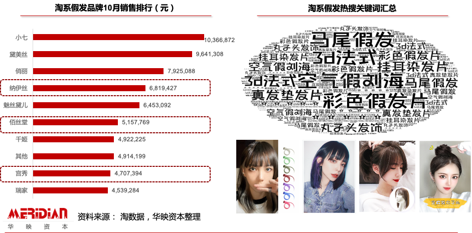 伴随国内居民生活水平提高,对美容美发、假发制品等的“颜值消费”逐渐增长,我国国内假发制品需求规模从2009年的7.19亿元增长至19年的67.25亿元。在淘宝上,月销量2万件以上的假发垫、假刘海比比皆是。无论是马尾假发、空气假刘海、彩色假发片……淘宝上各式假发,总有一款能满足你的需求。