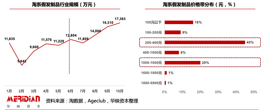 淘系假发行业年销售额为17亿元,上半年受疫情影响,整体表现低迷,6月份以后,销售增长恢复明显,近4个月的销售增速维持在15%以上,释放出明显的增长势能。