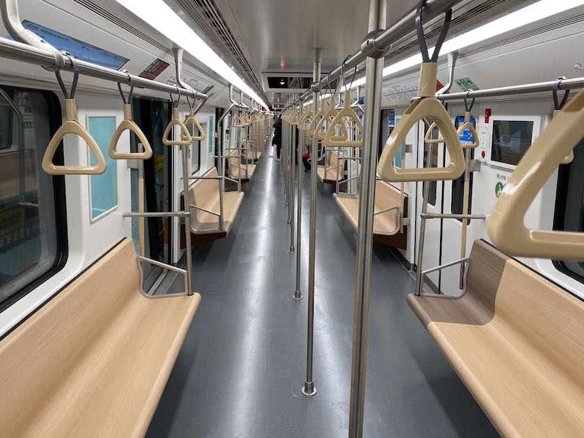 车厢内配备智能无线充电平台,方便乘客的手机进行无线充电;配置了可视化的紧急对讲系统和交互式门解锁功能,使控制中心可清晰看到对讲乘客情况,更精准地指导乘客;升级了通风系统,增大了出风范围,使乘客能够体验到无风感、无温差的舒适乘坐环境。