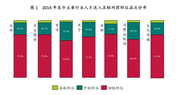 年纪轻、资历浅的员工是跳槽进入互联网行业最多的群体,他们也获得了最大的升职空间。