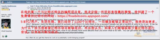 除此之外,他还利用自己挖得的上千枚比特币在社区玩起了免费试用营销。2010年6月,Gavin构建了名为freebitcoins的项目,让每个浏览该网站的用户都能免费领取5 BTC的奖励。当时这种简单粗暴的宣传手段吸引了不少新用户进场了解,同时获得多笔来自其他早期参与者的捐赠。