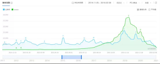 2015年间,比特币和MMM的百度搜索指数
