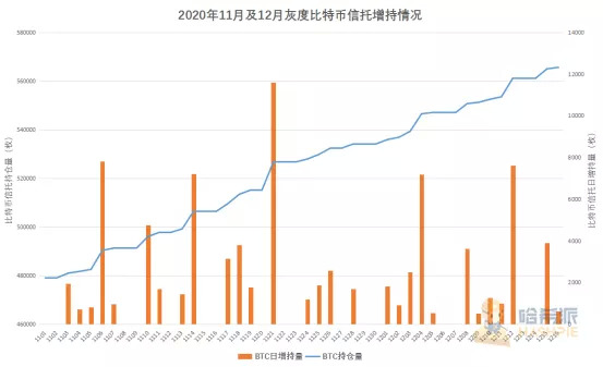 2020年11月到12月期间灰度比特币信托持仓情况(数据源自:Bishijie)