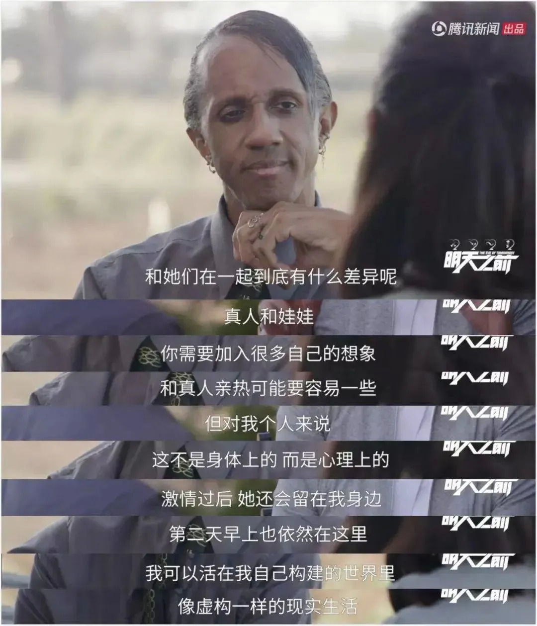 纪录片《明天之前》的第一集《机器人伴侣》中,几位性机器人/玩偶用户最初使用的原因,都是因为他们在现实亲密关系中受挫,于是试图从虚拟伴侣上寻找安慰。